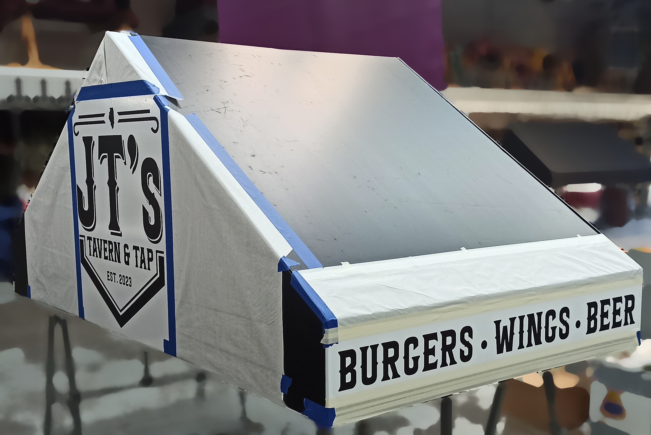 JT’s Tavern & Tap — stencil solvent-wash for backlight (IL, 2023; prev. employer)