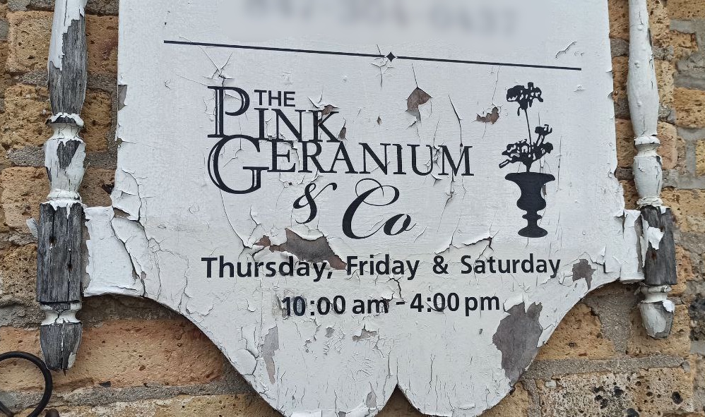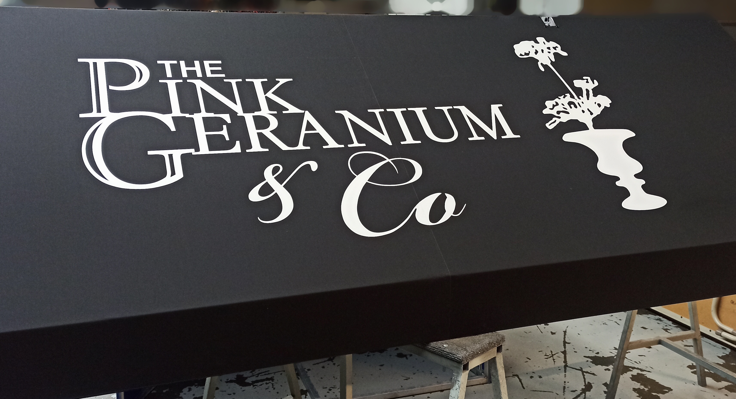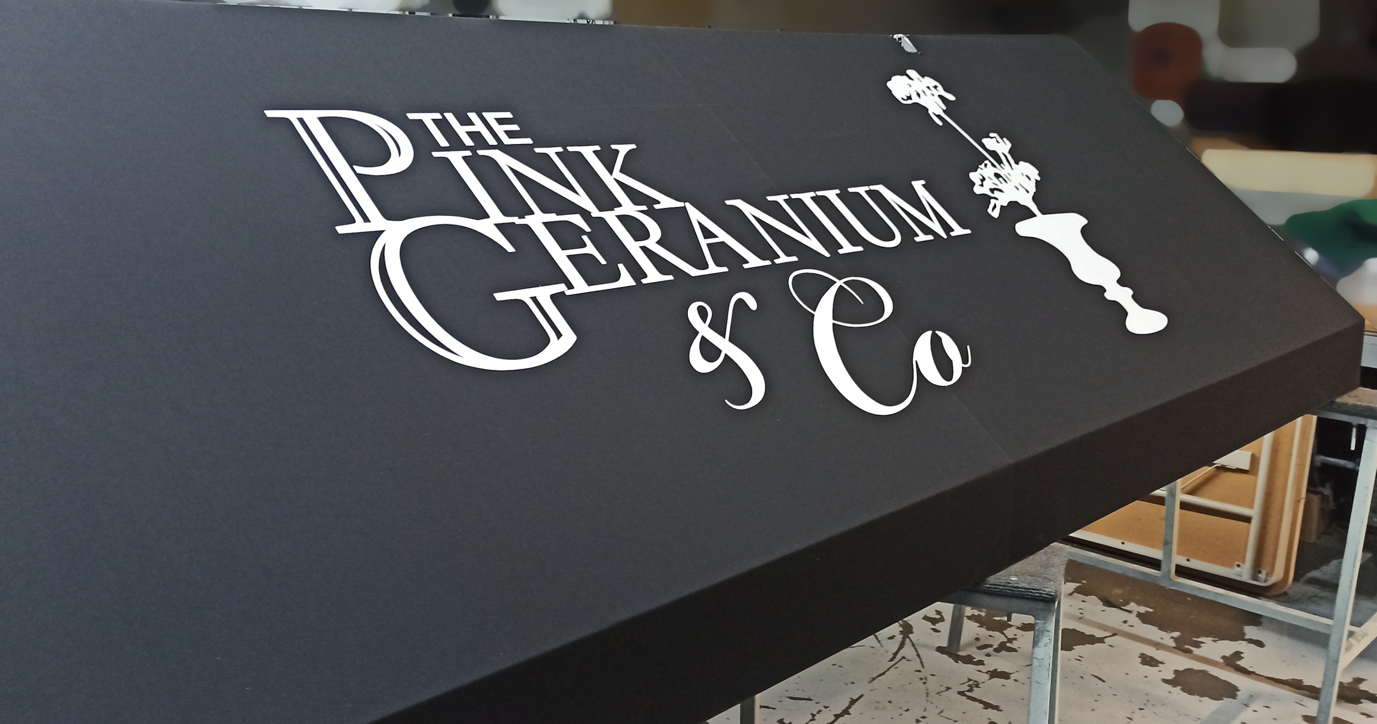 The Pink Geranium & Co — awning cover & logo restoration (IL, 2023; prev. employer)