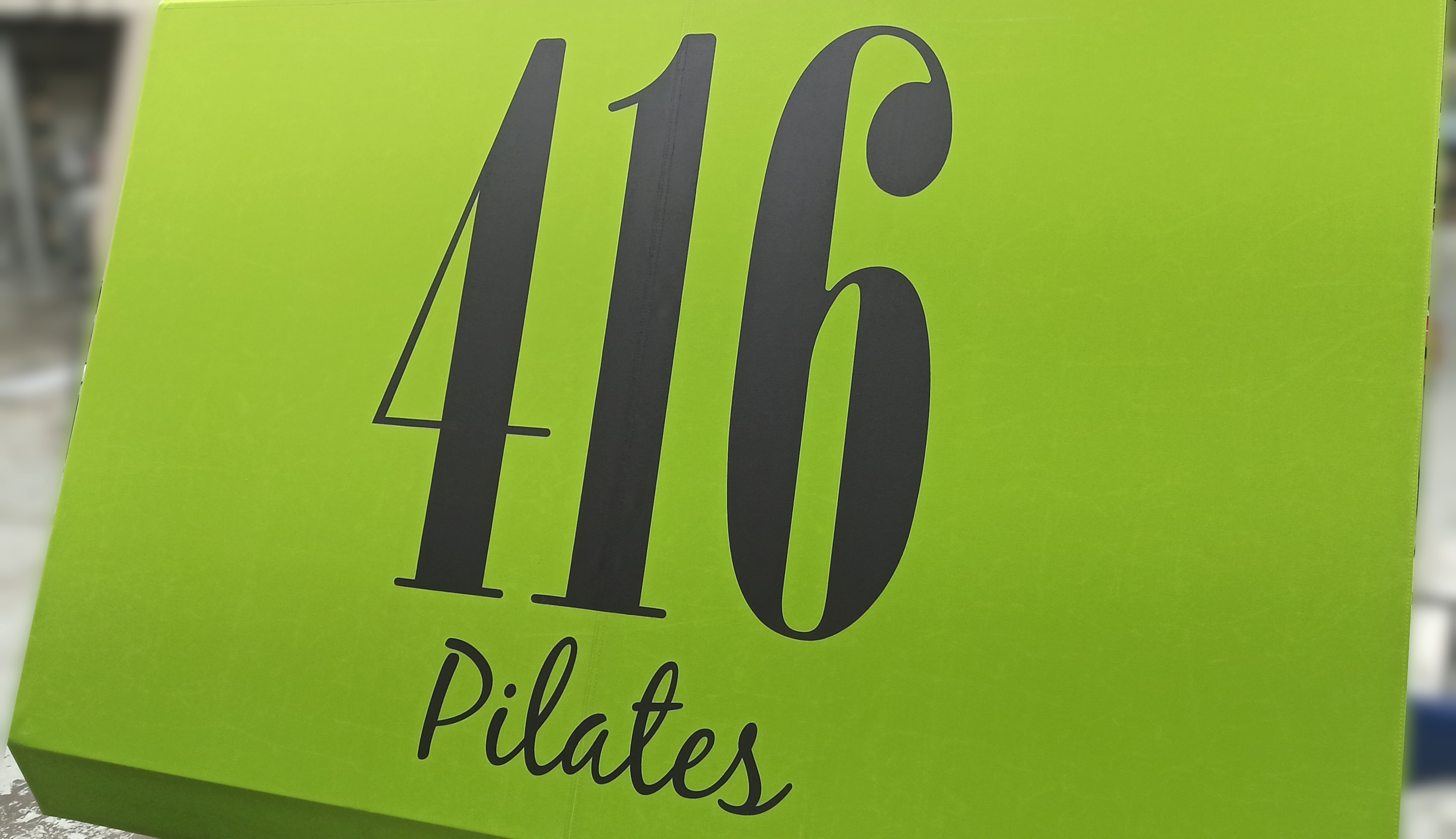 416 Pilates — fabric cut; painted lettering (IL, 2023; prev. employer)