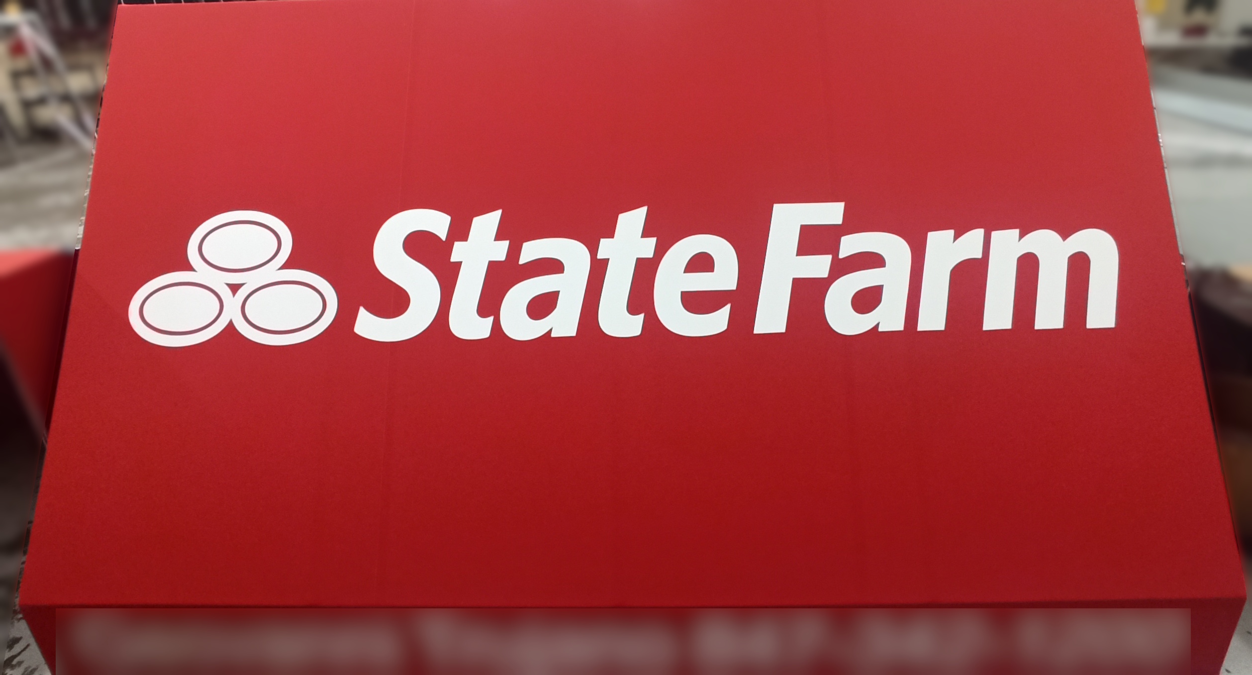 State Farm — half-dome entry awning (IL, 2024; Sunwell; prev. employer)