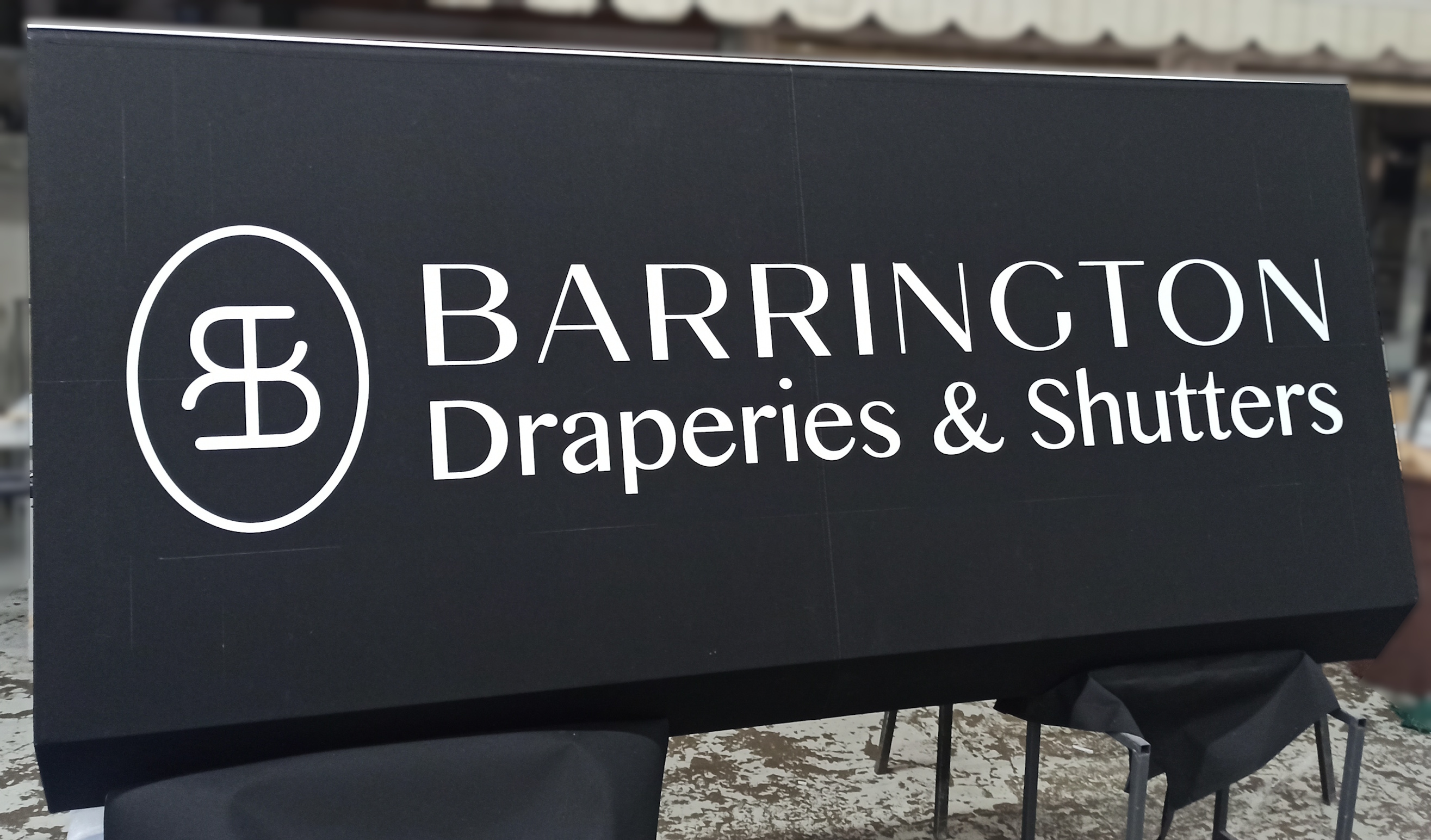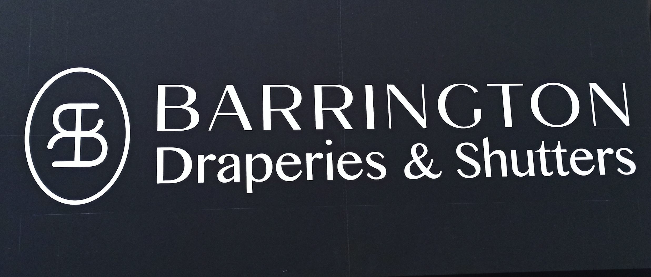 Barrington Draperies & Shutters — painted awning graphics (IL, 2023; prev. employer)