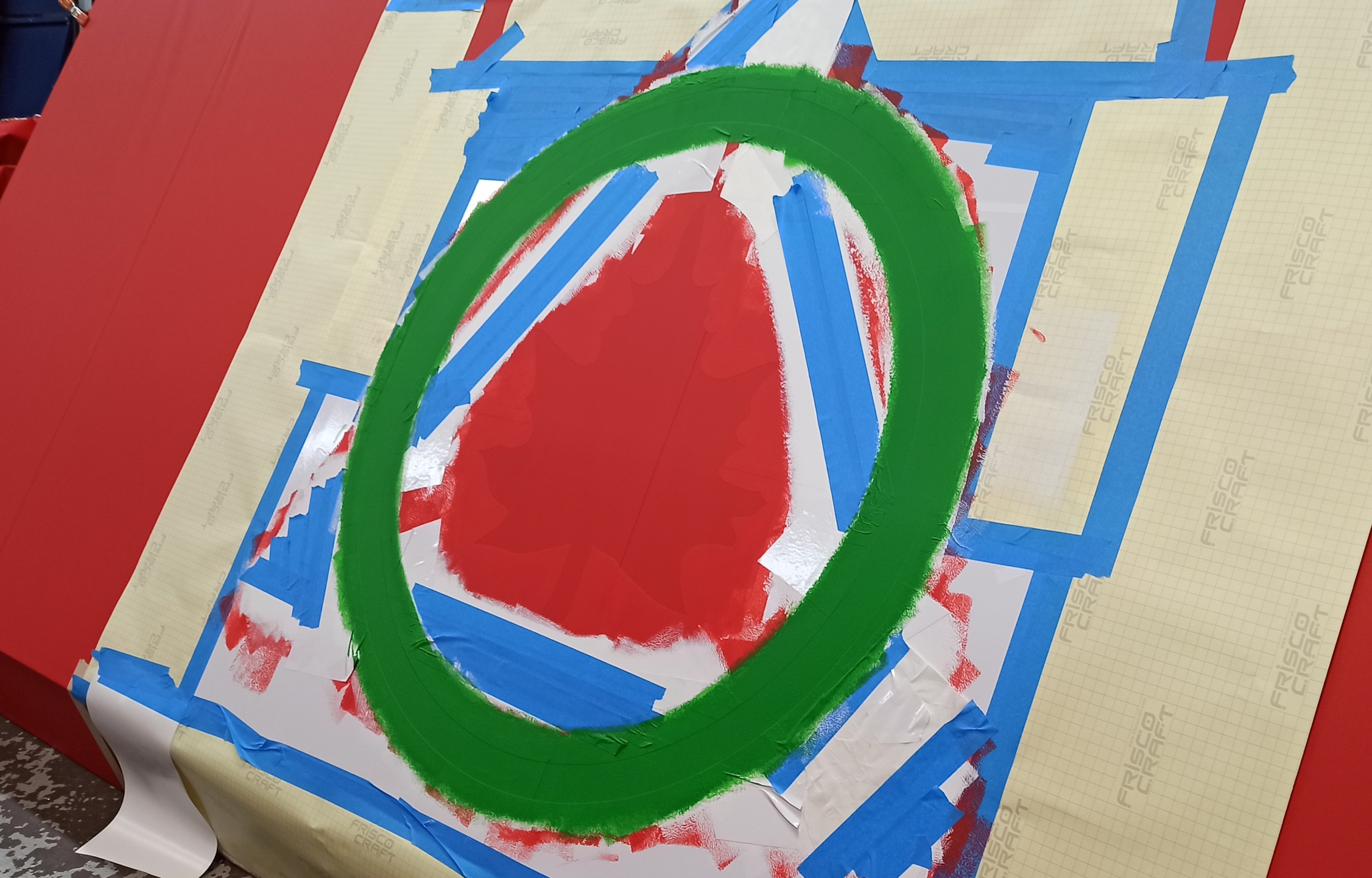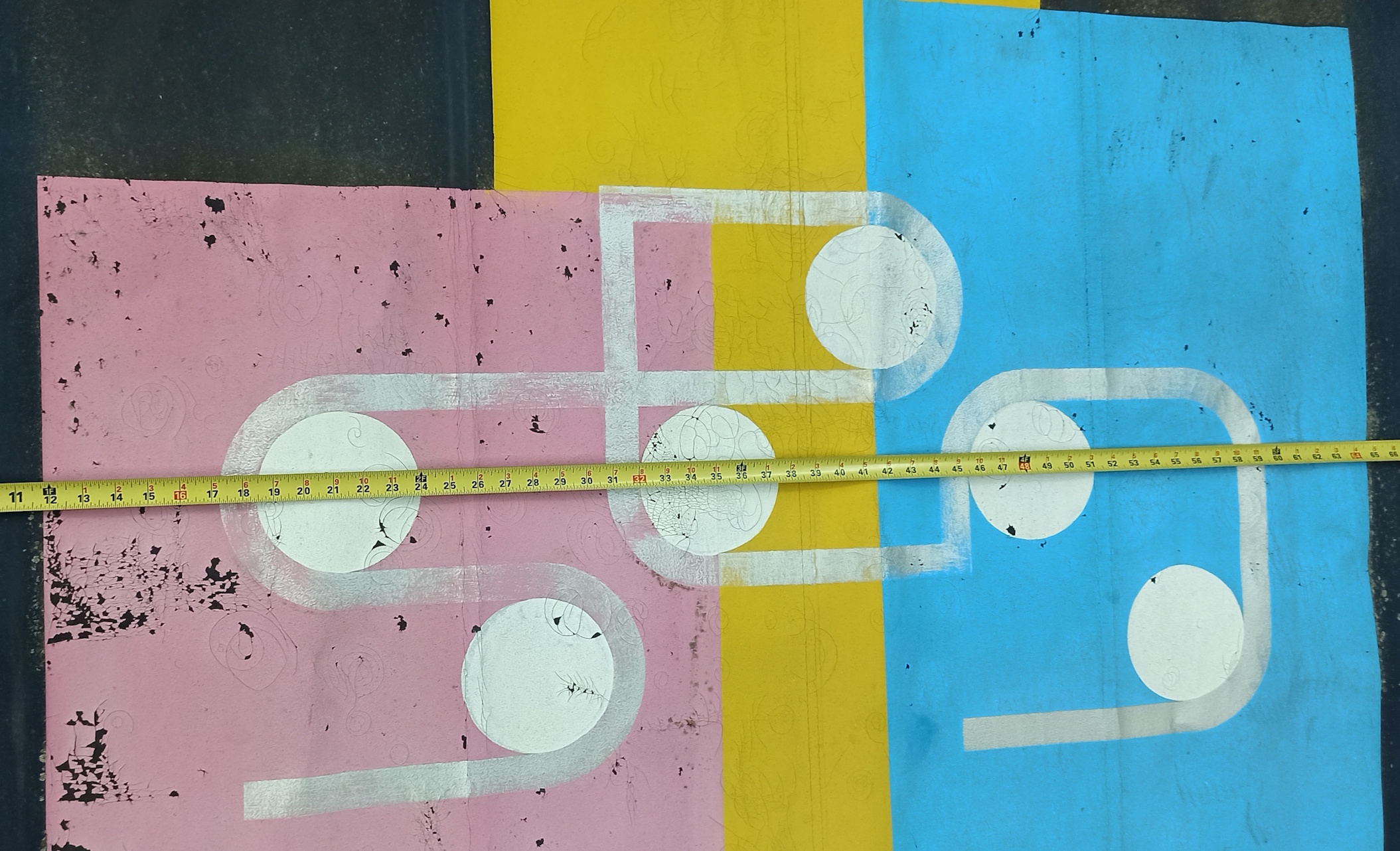“bente vintage”, fabric cut; paper mask layout; white paint — IL, 2023; prev. employer